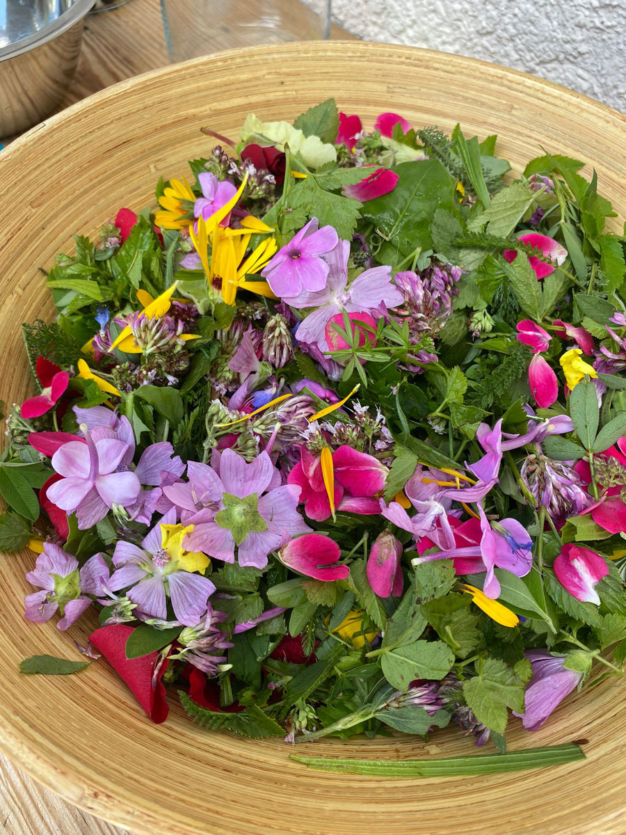 Im Anschluss ziehen wir gemeinsam in die Küche (oder ans Feuer) und verwandeln unsere Beute in ein köstliches, regionales Menü. Vom selbstgemachten Kräuterpesto bis zum wilden Salat – wir kochen gemeinsam, tauschen Geheimtipps aus und genießen am Ende unser selbst gesammeltes Festmahl an einer großen Tafel.
